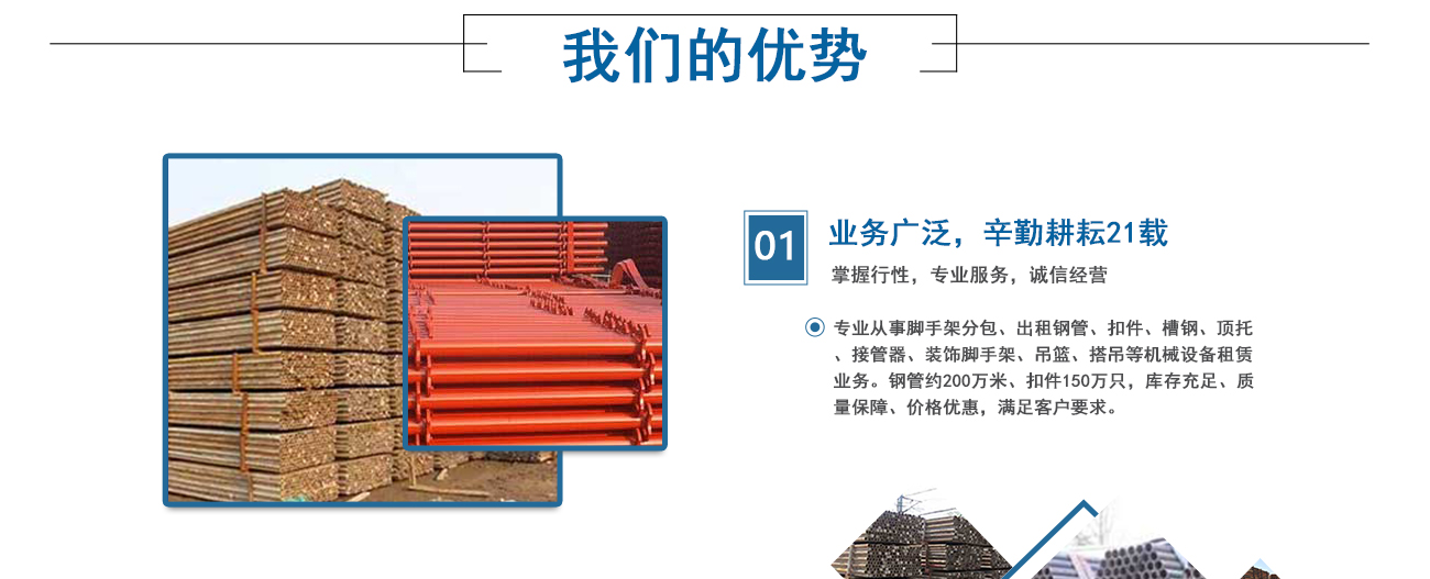 安徽海洋建筑工程機械租賃有限公司、淮南佳輝建筑工程有限公司是由淮南興勝鋼管租賃公司起家的,從事專業腳手架資質分包、鋼管、扣件、槽鋼、頂托、接管器、裝飾腳手架搭設、吊籃、搭吊等機械設備的租賃業務。公司成立于1999年,憑借著專業水準和成熟技術,在業內迅速崛起并不斷發(fā)展創(chuàng)新。